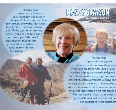 Nancy Grayson sends this response to "in search of good news". In Nancy's lovely photomontage, the reference to "MILR" is "McGill Institute of Learning in Retirement".